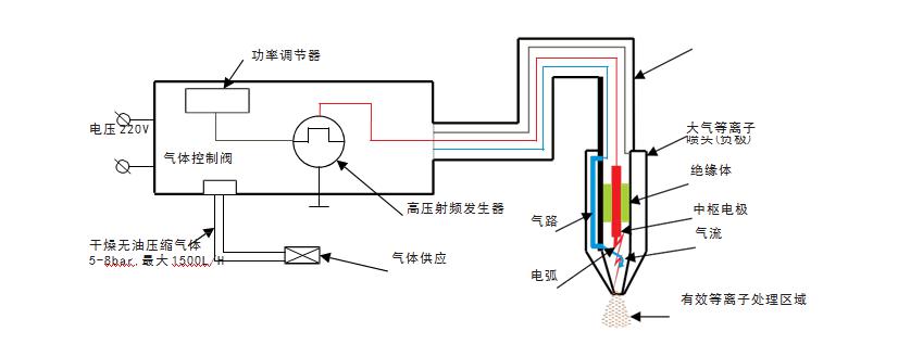 1、氣體激發(fā):在常壓環(huán)境下通過電暈放電、輝光放電或大氣壓微波等技術激發(fā)氣體形成等離子體。